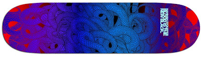 (Pictured below: ‘Black Dawn Brings Me Here’ ink on paper; ‘In These Arms I Keep’ ink on paper; Packing illustrations for treasury of erotic stories book ‘X’ by Chronicle Books; Skatedeck made with Blood is the New Black for Arts Projekt; ‘The Climax of a Species’ ink on paper; and a piece from ‘In Death’s Arms, Never Stray’ series.)