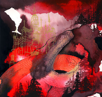 Hannah Stouffer is a California-based artist and commercial illustrator who takes the themes of raw animal power, old-world flair, death, and decadence in the modern and natural world and smashes them all together in beautiful pieces that are exploding with color. Most importantly, she kicks ass. In almost all of her work, you can almost see this visible tensions between life and death, sensuality and frigid indifference, vivid color and stark blacks and whites. It’s intense in every case, even in her commercial work. In fact, with someone as popular as her in the realm of commercial design and illustration (see Blood is the New Black skatedecks, Secret deodorant, Ludacris…), that stands as one of the most impressive things about Stouffer’s work: it’s consistent in its execution and content in every instance. It seems like she creates what she wants to create, for the most part, and that the passion behind the work is genuine. To top it all off, she’s self-taught, which you have to dig.